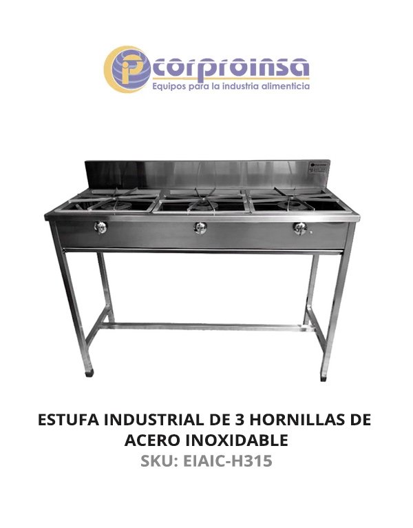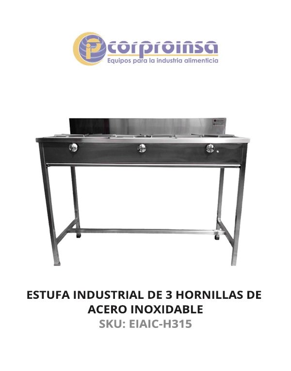- ESTUFA INDUSTRIAL DE 3 HORNILLAS DE ACERO INOXIDABLE