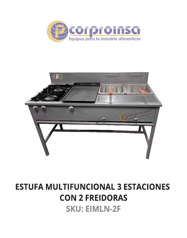 - ESTUFA INDUSTRIAL MULTIFUNCIONAL TRES ESTACIONES CON 2 FREIDORAS
